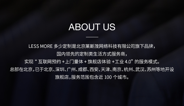 我們的定制產(chǎn)品將在量體結束后最短7個工作日內(nèi)完成